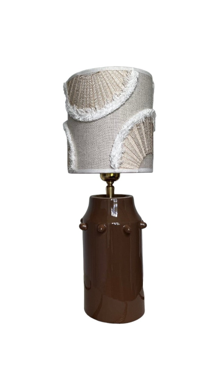 Deze handgemaakte lampenkap van de exclusieve ‘Gitane’ stof van Karin Sajo brengt verfijning en zachtheid samen in één uniek ontwerp. De rijke textuur van de stof, in combinatie met de frisse witte bies, zorgt voor een elegante en stijlvolle uitstraling. De lampenkap voelt klassiek aan, maar heeft door de stofkeuze een moderne verfijning.